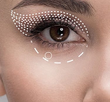 Targets the removal of excess skin and fat in the upper eyelid area. Helps eliminate drooping and "heavy" appearance, improves eye shape, and relieves visual field obstruction.
